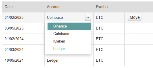 Here you can choose the new destination account to move all of the current lots from this account. You can also choose "Other" and type in a new name.