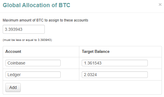 Let's say I have 3.393943 BTC and I need to assign them as per my actual wallet balances.