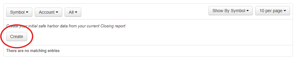 Click the Create button to create your safe harbor. This initially is just a copy of your Closing report but where you can begin to make adjustments.