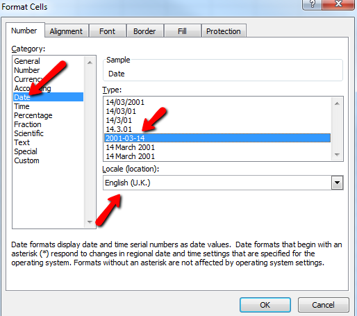 One of the best date formats to use in Excel is found in the English (U.K.) section of the Date format.