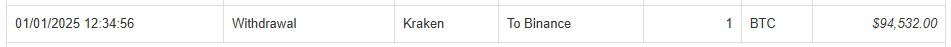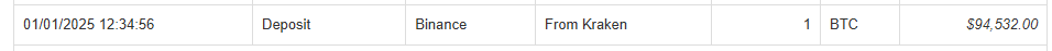 3. Automatically add a Deposit into the Income tab for your Binance account of 1 BTC and give it the cost basis taken from your Kraken lots.